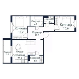 Продается студия + 2 спальни площадью 64,59 кв.м.