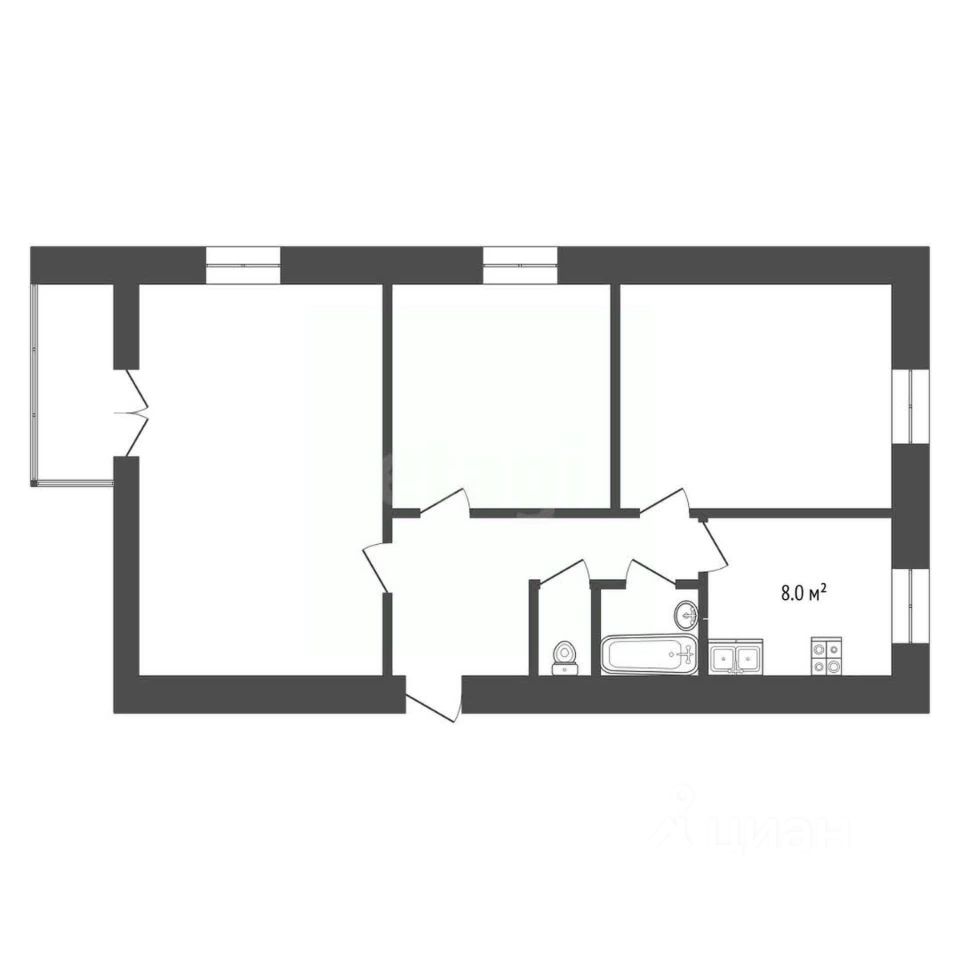 Квартира с размахом: просторная кухня и большие комнаты правильной формы.