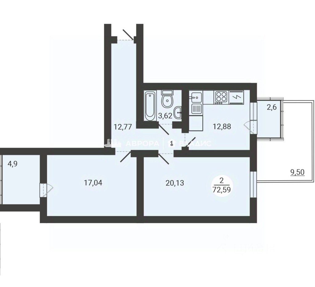 o Лоджия 2 2,6 кв м
