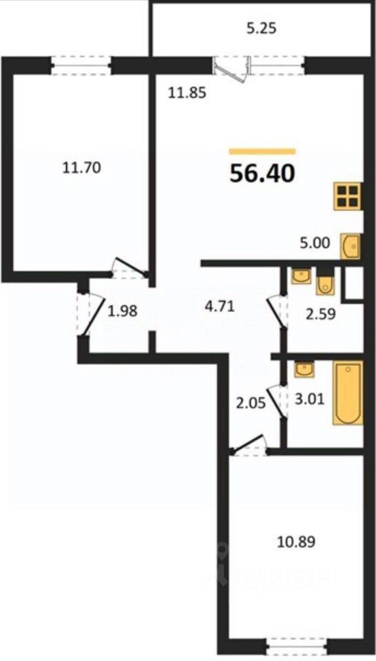 Продаётся 2-комнатная квартира. Просторная кухня-гостиная плюс две спальни, общей площадью 56,6 м2.