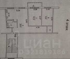 Перепланировка узаконена, кухня-студия 28 кв.м и две отдельные спальни - 12.2 кв.м и 9.5 кв.м. Увеличен санузел, ниша под стиралку, на кухне ниша под холодильник.