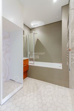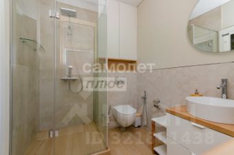 В квартире просторный сан узел в кафеле, установлена инсталляция, ванная гидромассажем, с необходимыми элементами интерьера.