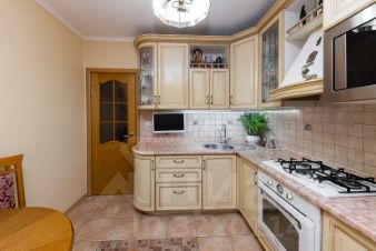 - в кухне установлен качественный классический угловой кухонный гарнитур со встроенной техникой;