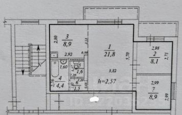 Гостиная 22 кв.м, спальня 8 кв.м, детская 9 кв.м, кухня 9 кв.м. Санузел раздельный 4 кв.м и 1,6 кв.м.