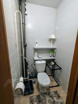 В ванной убрана раковина, но при желании её можно установить обратно (раковина имеется). Установлено несколько полок и встроенный шкаф под бытовую химию и хозтовары.