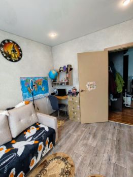 В квартире сделан косметический ремонт: заменены все межкомнатные и входная двери, на полу - линолеум, стены - декоративная штукатурка, натяжной потолок, между спальней и детской сделана звукоизоляция, также звукоизоляция по стене с соседней квартирой.
