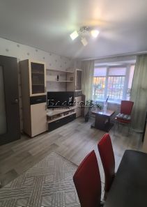 Квартира в хорошем состоянии. Выполнен косметический ремонт. Перепланировки нет. Натяжные потолки. Все окна пластиковые. Межкомнатные двери - ламинированные. Выровнены стены и наклеены обои. На полу линолеум. Санузел совмещен, подготовлен к ремонту. Сантехника и водяные коммуникации в рабочем состоянии. Установлены счетчики на воду. Балкона нет. Входная дверь - металлическая. Остается кухонный гарнитур, остальная мебель по договоренности.