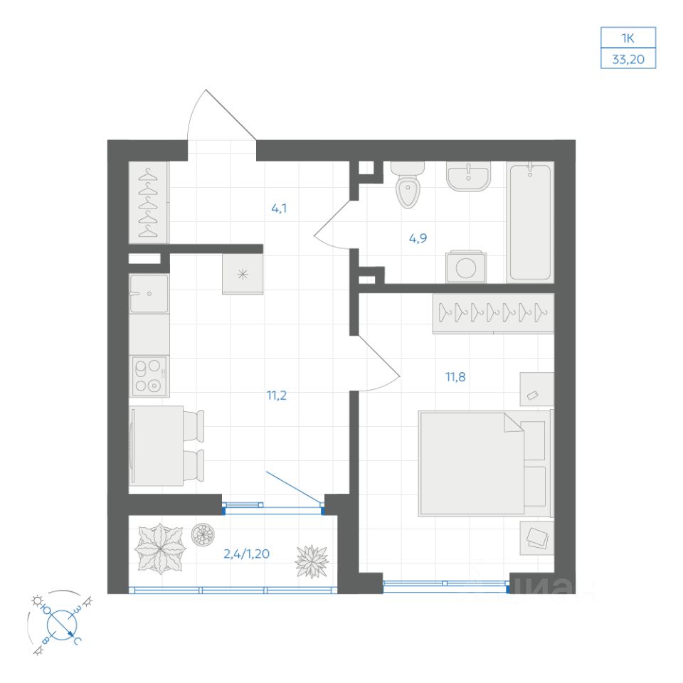 Общая площадь33,2 м²