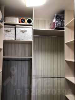 * Большая спальня: скрытая гардеробная с зеркальной дверью купе. На стенах декоративная штукатурка.