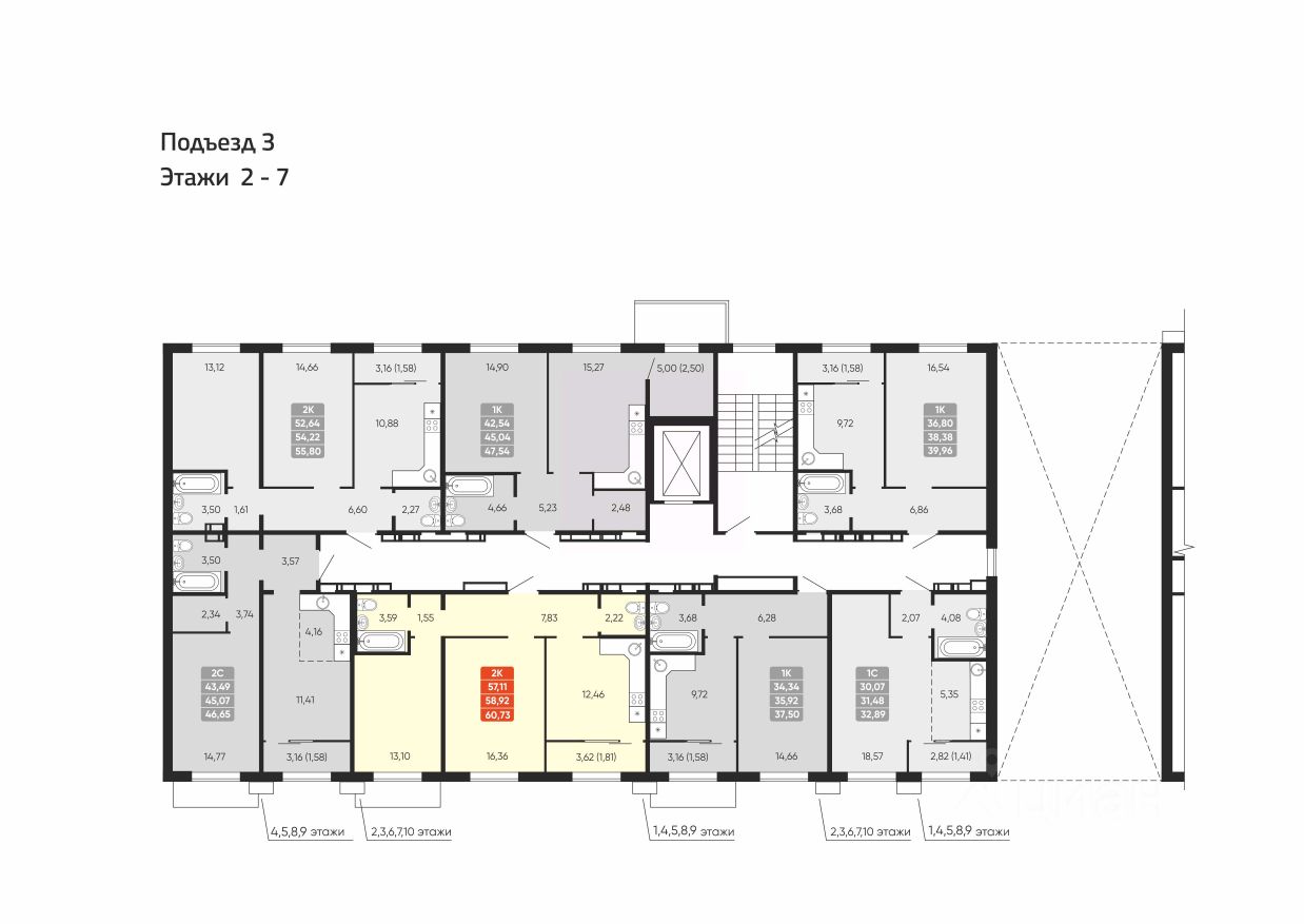 Общая площадь58,92 м²
