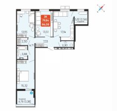 Общая площадь86,08 м²