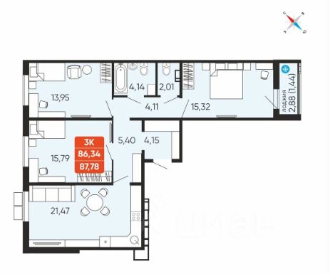 Общая площадь87,78 м²