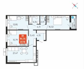 Продается 3-комн. квартира, 87,78 м²