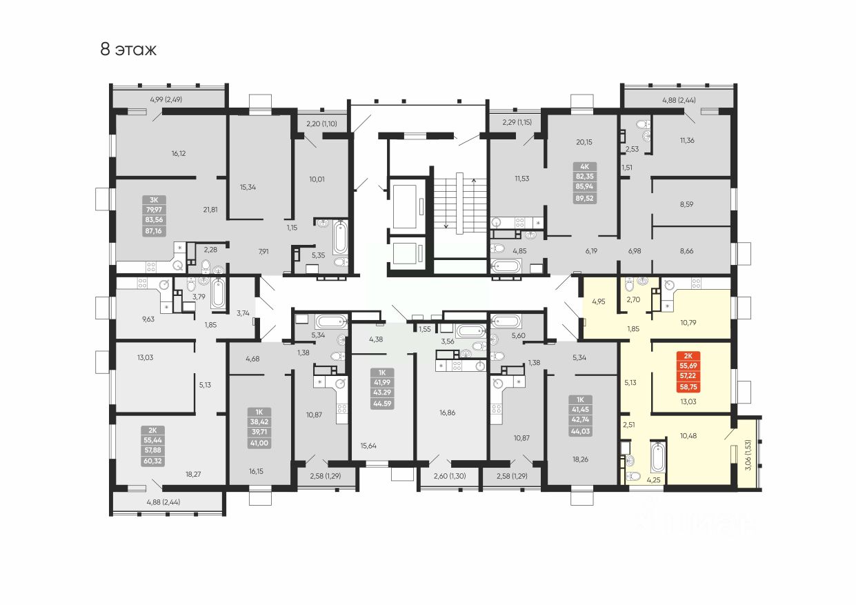 В доме всего 1 подъезд, первый этаж предназначен для коммерческих помещений, предусмотрено 2 лифта.