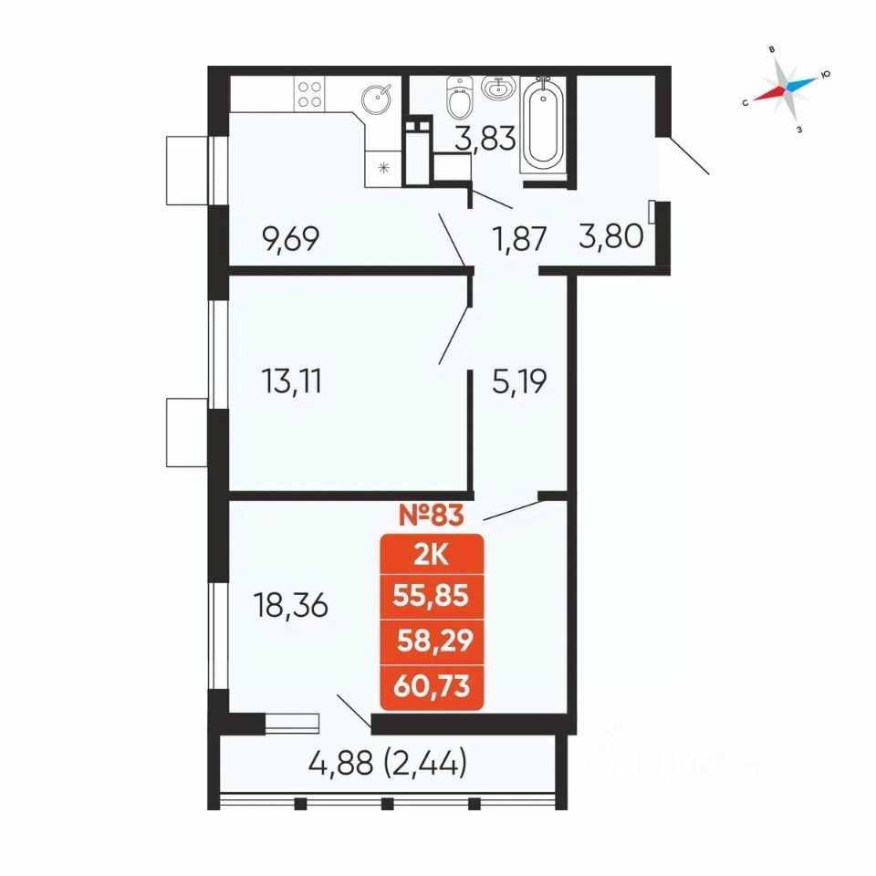 - в комнатах, коридорах и кухне предусмотрены белые обои под окраску, линолеум 32 класса под натуральную паркетную доску