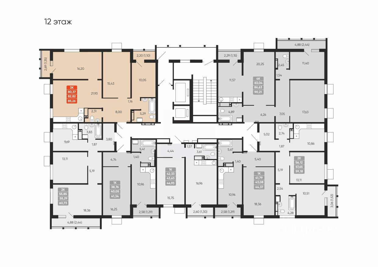 В доме всего 1 подъезд, первый этаж предназначен для коммерческих помещений, предусмотрено 2 лифта.