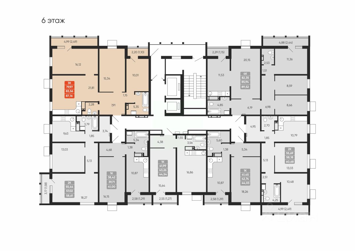 В доме всего 1 подъезд, первый этаж предназначен для коммерческих помещений, предусмотрено 2 лифта.