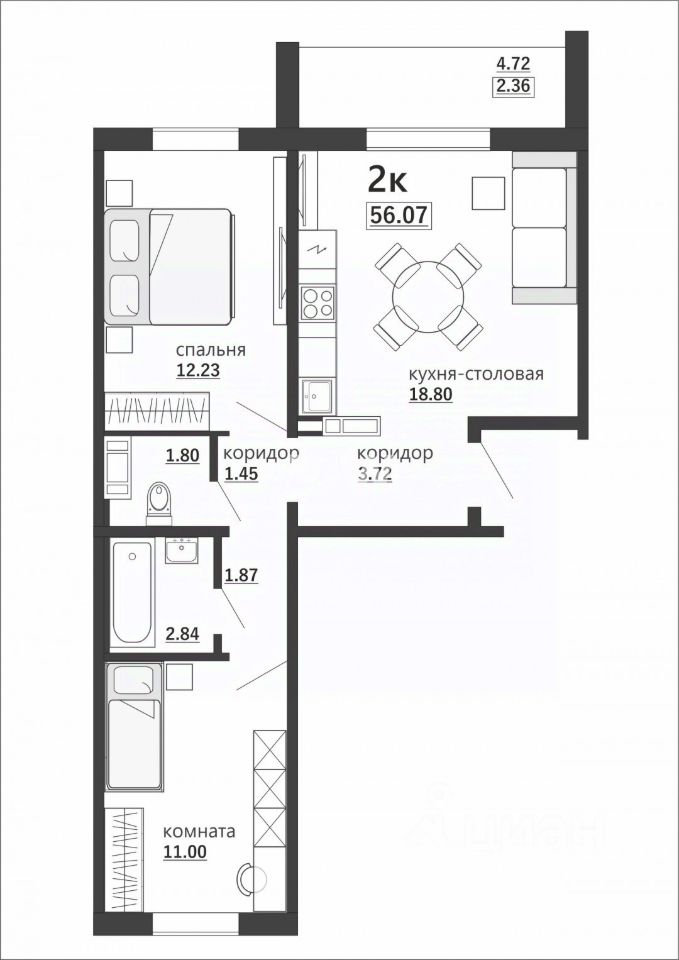Продается двухкомнатная квартира в новом современном жилом комплексе "АртРешение".