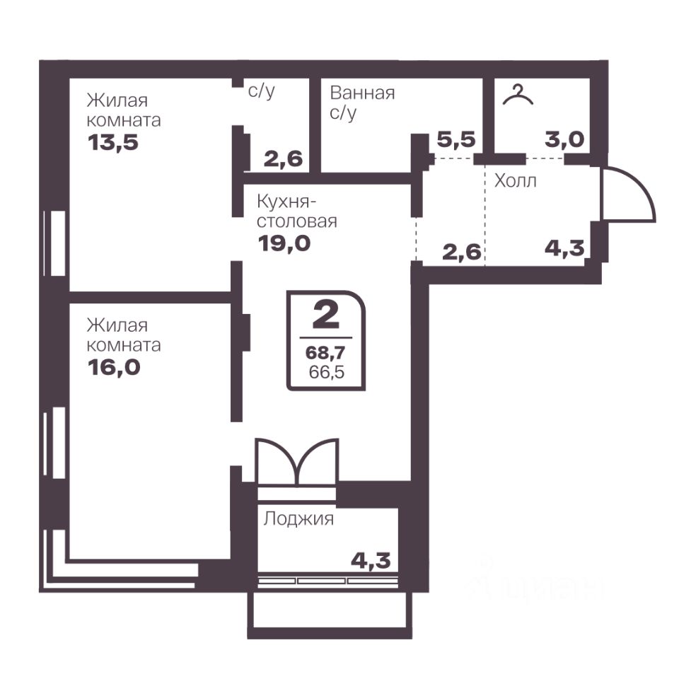 Общая площадь66,5 м²
