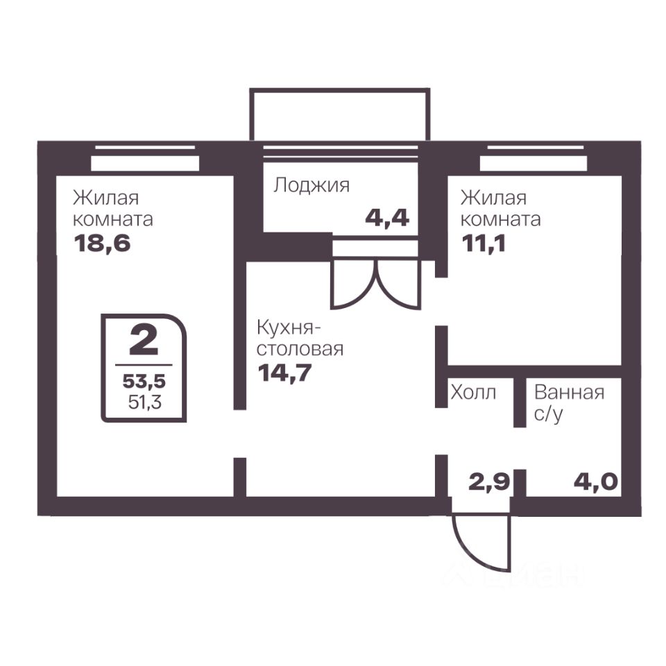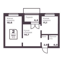 Общая площадь51,3 м²