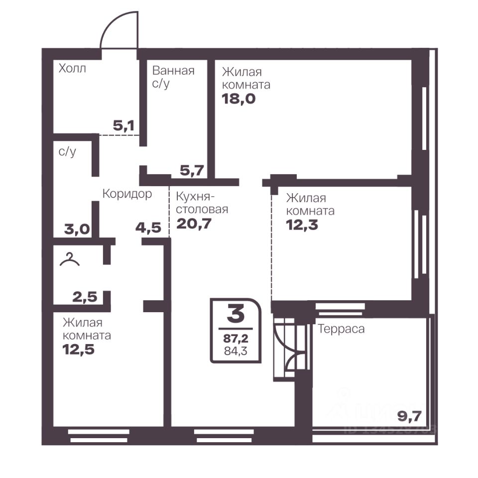 Общая площадь84,3 м²