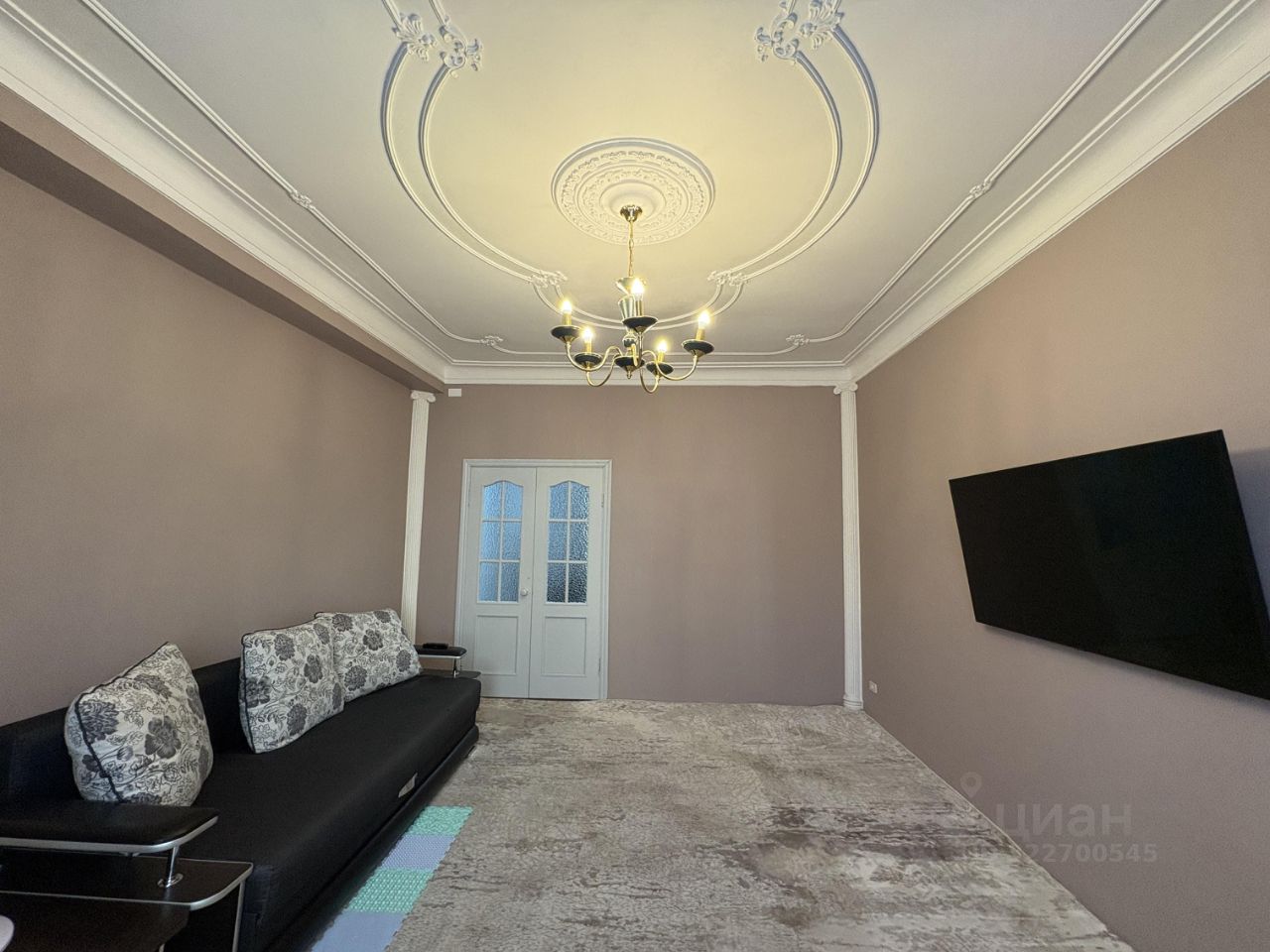 Потолки украшены оригинальной архитектурной лепниной, создающей особый шарм жилого пространства.