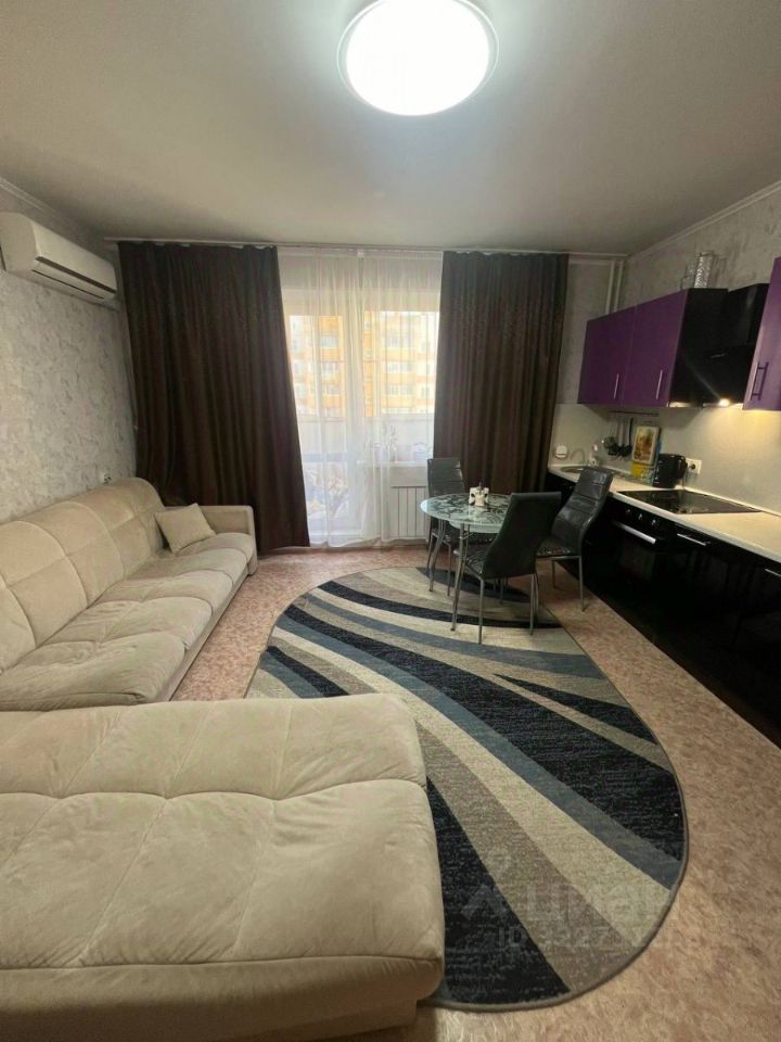 Особенность помещения — просторный и светлый зал с огромным окном, выходящим на лоджию. Кроме того, помещение оборудовано удобным кухонным гарнитуром, обеспечивающим функциональность и эстетику кухни.