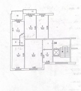 Просторная светлая теплая квартира с большим залом и кухней, площадью 118,7 м², расположенная на 2 этаже 10 - этажного дома с узаконенной перепланировкой.
