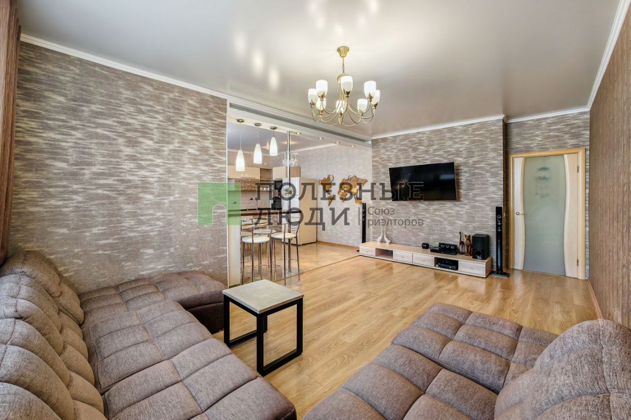 просторная гостинная 25 кв.м. с отдельно выделенной зоной кухни 15 кв.м. - идеально для семейных ужинов и встреч с друзьями