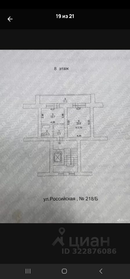 Квартира общей площадью 50,1 м, комната 23,6м, кухня 13 м, санузел 6м, лоджия на комнату и кухню длиной 9м
