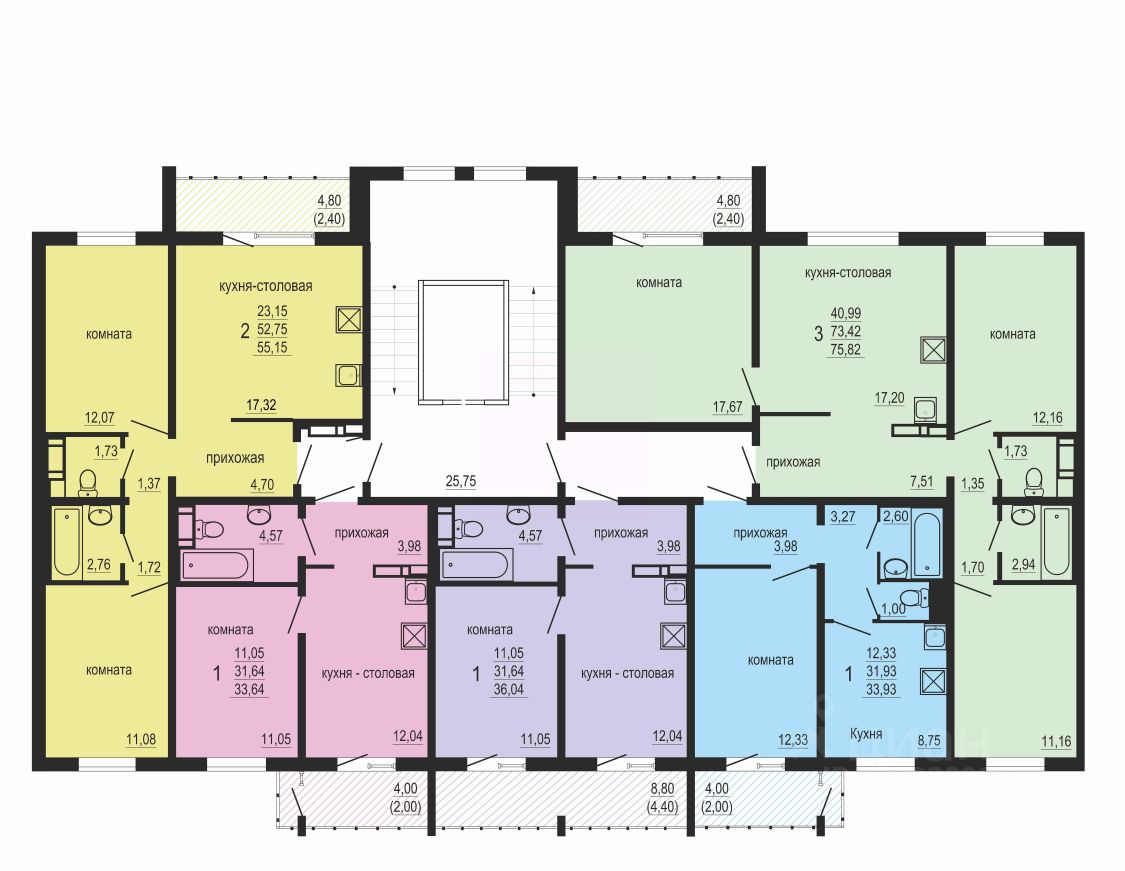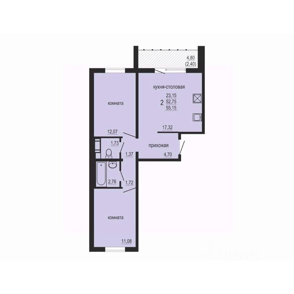 Общая площадь55,15 м²