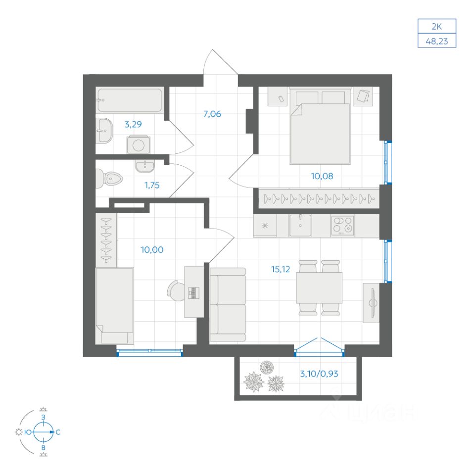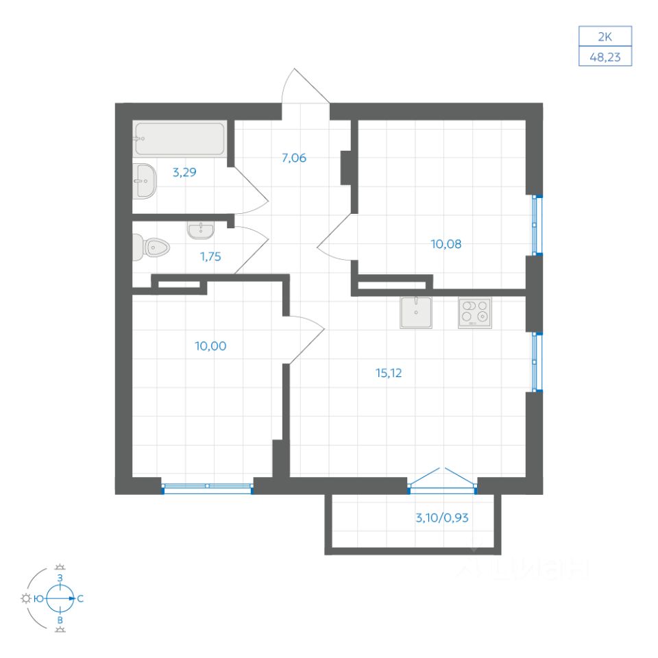 Общая площадь48,23 м²