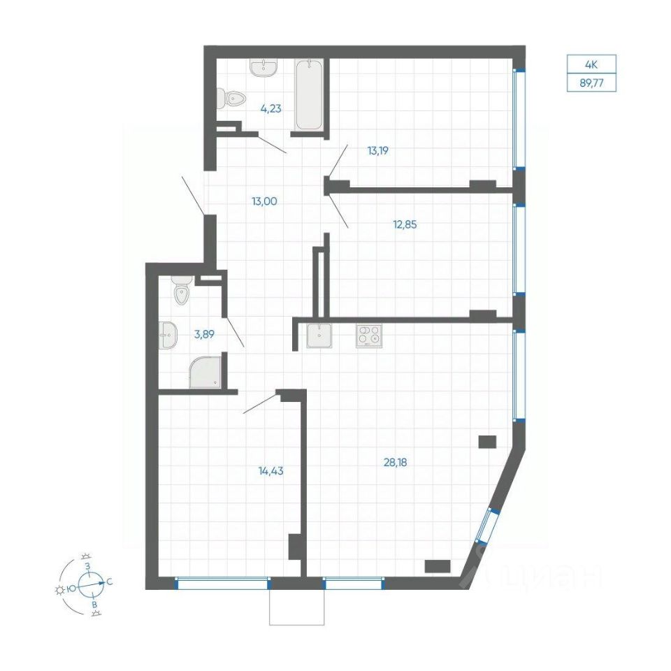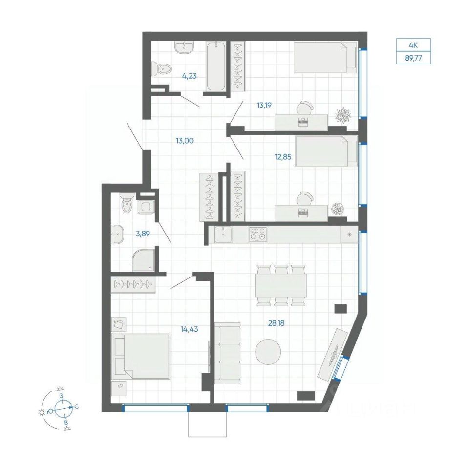 Общая площадь89,77 м²