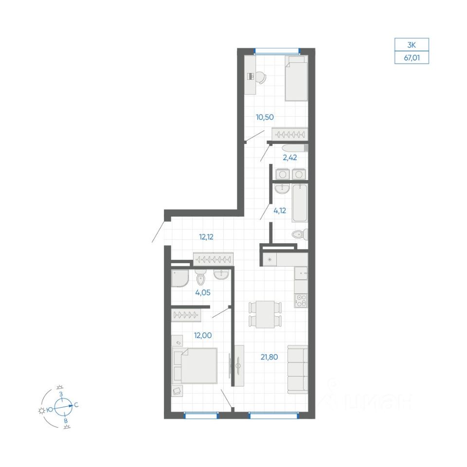 Общая площадь67,01 м²