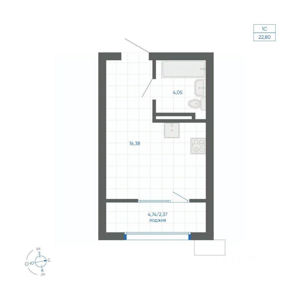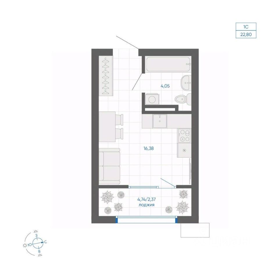 Общая площадь22,8 м²