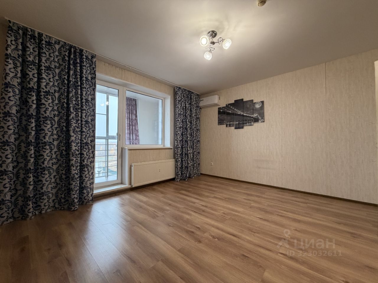 Просторная и светлая квартира с удачной планировкой — одна большая комната, кухня, коридор со встроенной гардеробной, раздельные туалет с ванной, большой балкон с панорамными окнами.