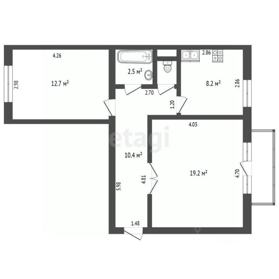 - Санузел: раздельный с плиточной отделкой.
