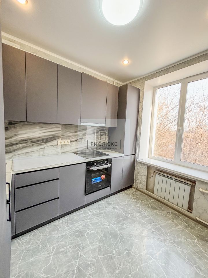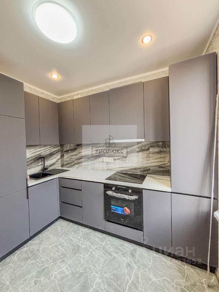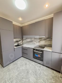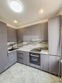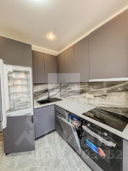 В кухне установлен современный кухонный гарнитур с встроенными бытовыми приборами: холодильником , посудомоечной машиной , духовкой , вытяжкой и плитой . Всё остаётся новым для новых хозяев.