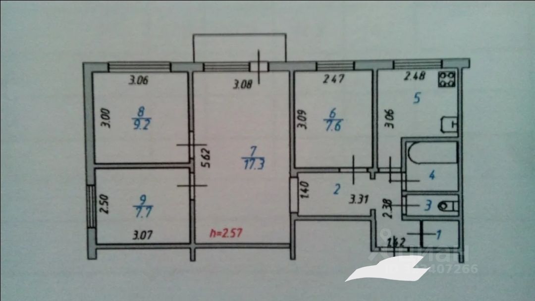 - Четыре комнаты, одна из которых проходная (зал)