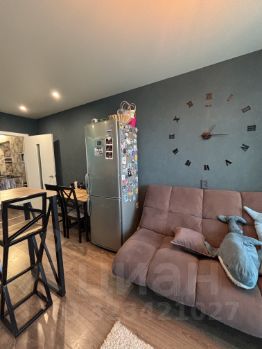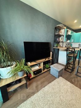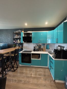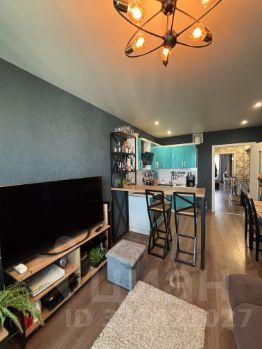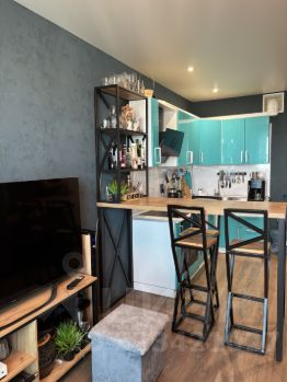 В квартире остаётся практически вся мебель, которая представлена на фото: кухонный гарнитур с техникой (вытяжка, варочная поверхность, духовой шкаф, холодильник), барная стойка, диван, телевизор на кухне и стенка под телевизор. В спальне - двуспальная кровать и шкаф-купе.