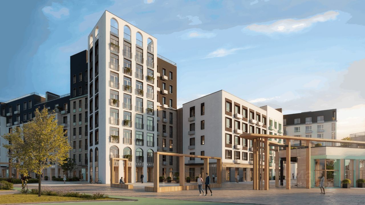 На первых этажах разместятся коммерческие помещения. Планируется строительство двух детских садов и школы, первый детский сад находится на стадии строительства. В проекте также городская площадь, благоустройство набережных, велосипедные и пешеходные тропы, а также дополнительные общественные пространства.