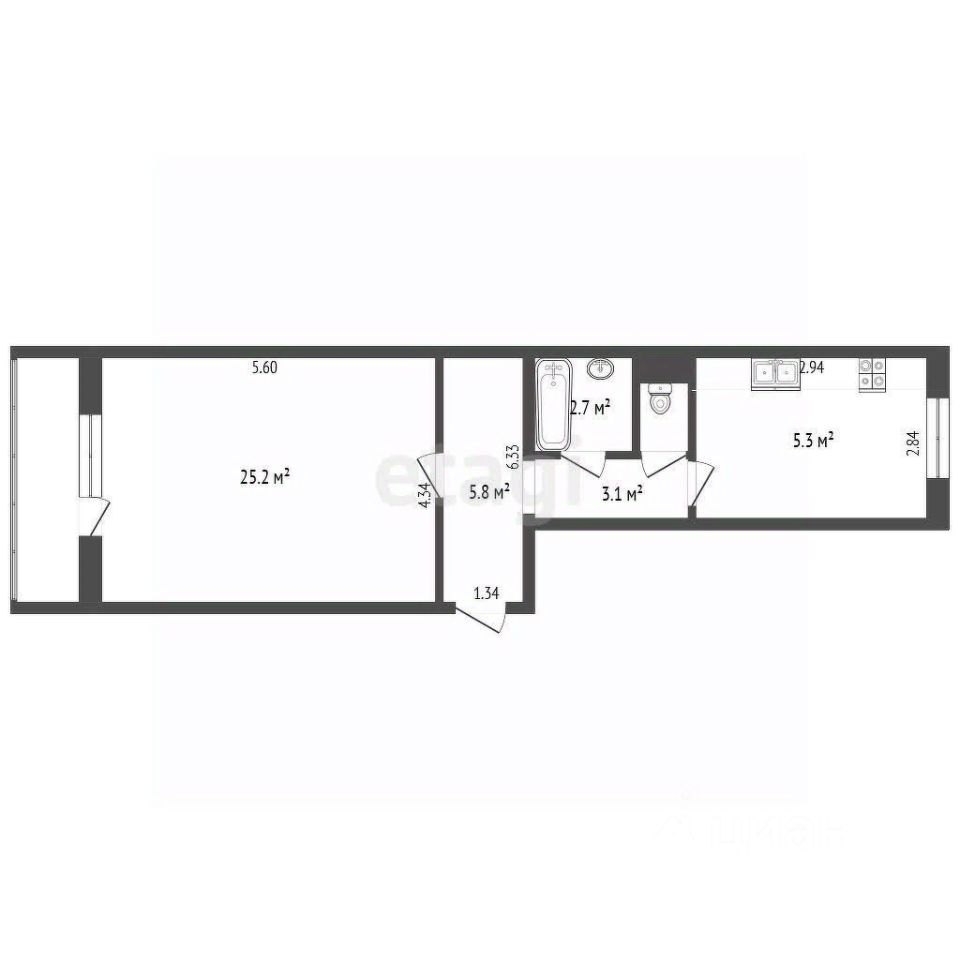 Жилая площадь: 26 м²