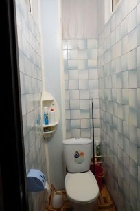 Дом Шлакоблочный Сталинский из элитных того времени домов пол доска деревяная в комнатах ламинат в коридоре и кухне линолеум, в туалете и ванной кафель.