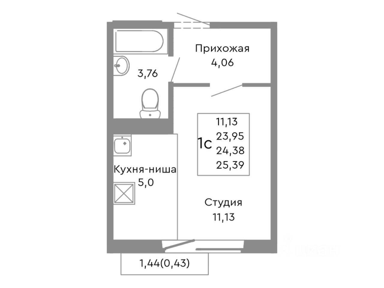 24,38 м²