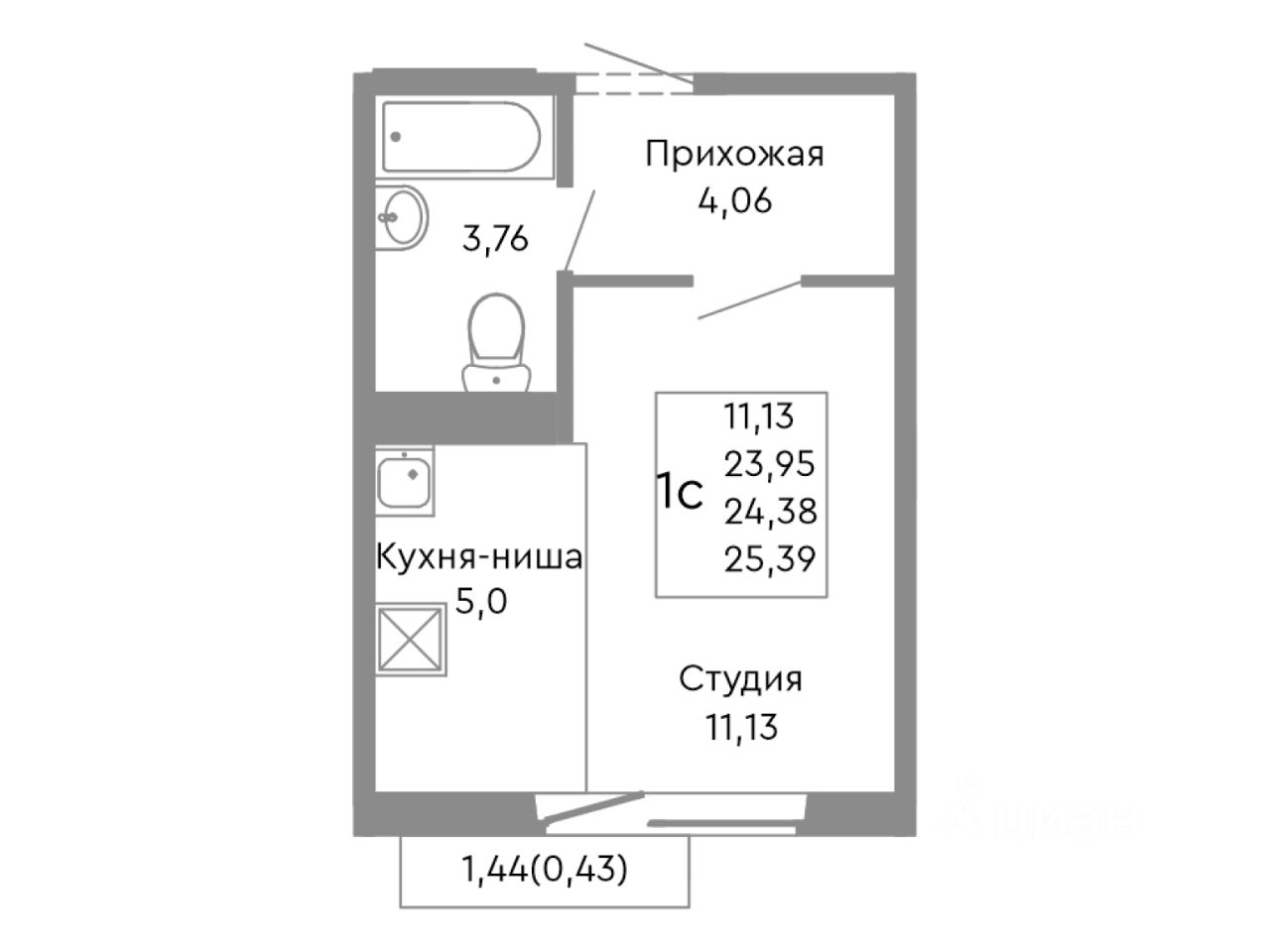 24,38 м²