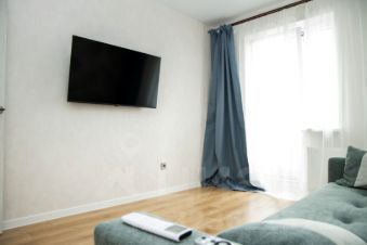 В квартире выполнен современный ремонт, установлена необходимая мебель. В наличии вся необходимая техника: кондиционер, стиральная и посудомоечная машины, электрическая плита, духовой шкаф, микроволновая печь, холодильник, телевизор, утюг. Совмещенный санузел оборудован душевой кабиной. Мебель и техника новые. Также имеется просторный балкон с красивым видом на окружающий микрорайон, реку и город.