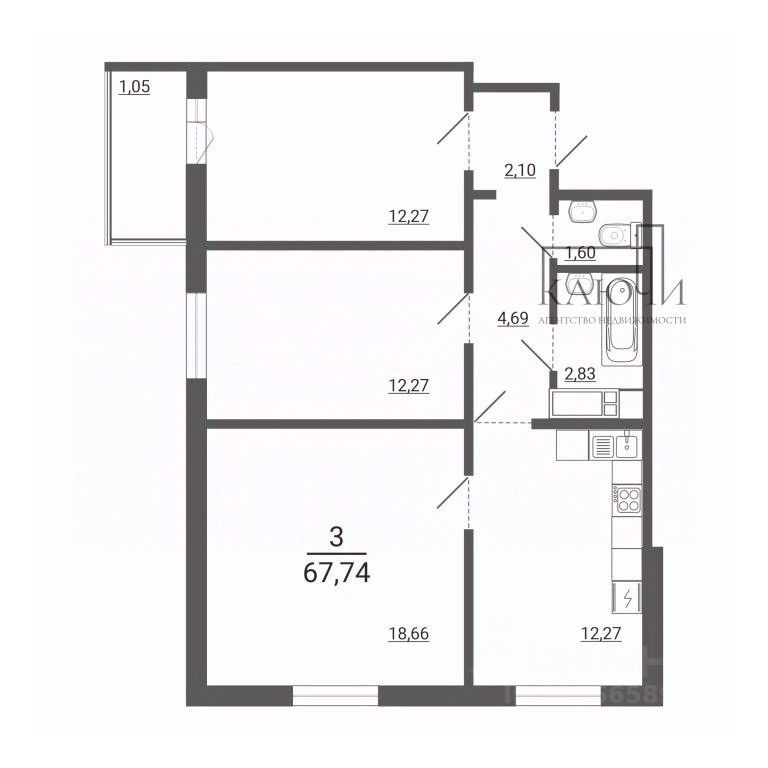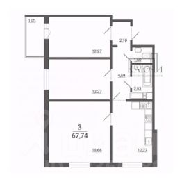 Общая площадь 67.74 кв.м.