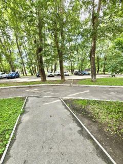 Во дворе много зелени, детская площадка.