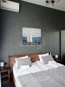Планировка эффективно организована: в гостиной установлен двуспальный диван, а в спальне — кровать размера King Size, что позволяет разместить семью с детьми или две пары.