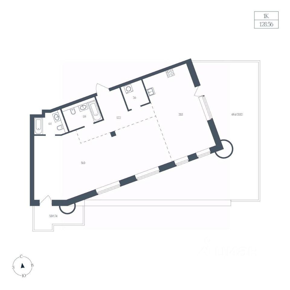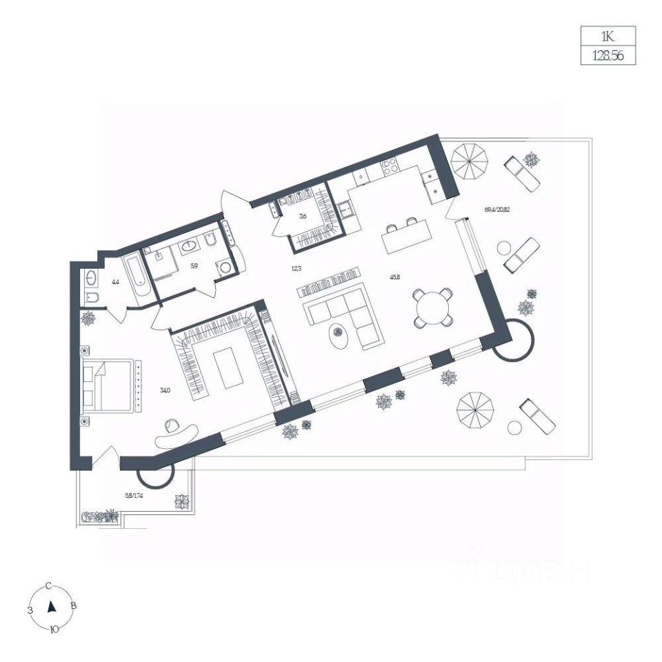 Общая площадь128,56 м²